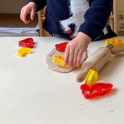 Die großen Krippenkinder haben heute aus Salzteig lustigen Baumbehang hergestellt.