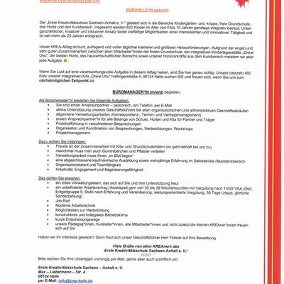 Büroheld*in gesucht Wir suchen eine/n neue/n Büroheld*in. Bewerben Sie sich, wir freuen uns auf Sie :-) 260116 Büroheld in gesucht 4.5 MB Datumsbezug: 16.01.2026 | Letzte Änderung am 16.01.2026, 14:26 Uhr © Sandra Wendt